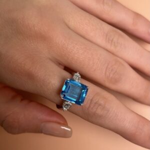 טבעת בלו טופז עם יהלומים בצדדים "דיקלה"